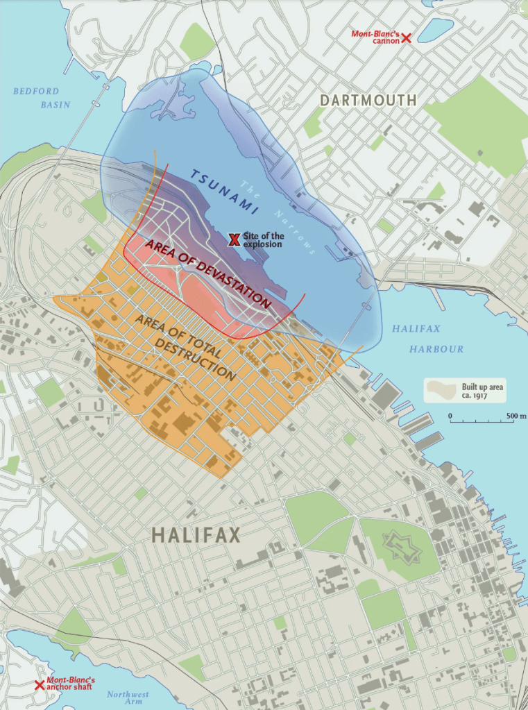 - Halifax explosion. (n.d.). The Canadian Encyclopedia. https://www.thecanadianencyclopedia.ca/en/article/halifax-explosion#:~:text=Halifax%20was%20devastated%20on%206,first%20atomic%20bombs%20in%201945